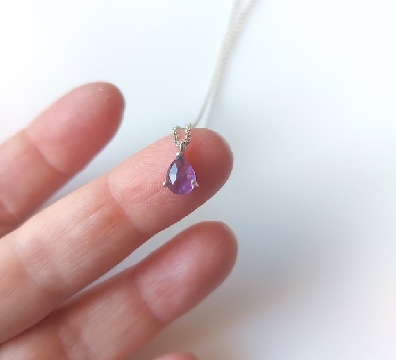Silver Amethyst Teardrop Necklace Sustainable minimal jewellery OMCH Oh My Clumsy Heart Very well made.