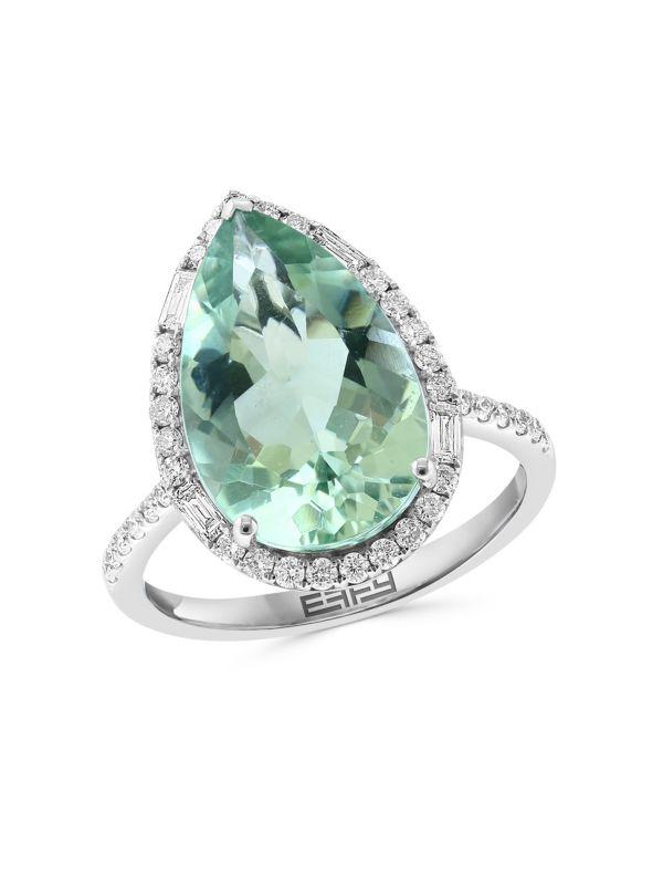 14K White Gold Green Amethyst and Diamond Ring Very well made.
