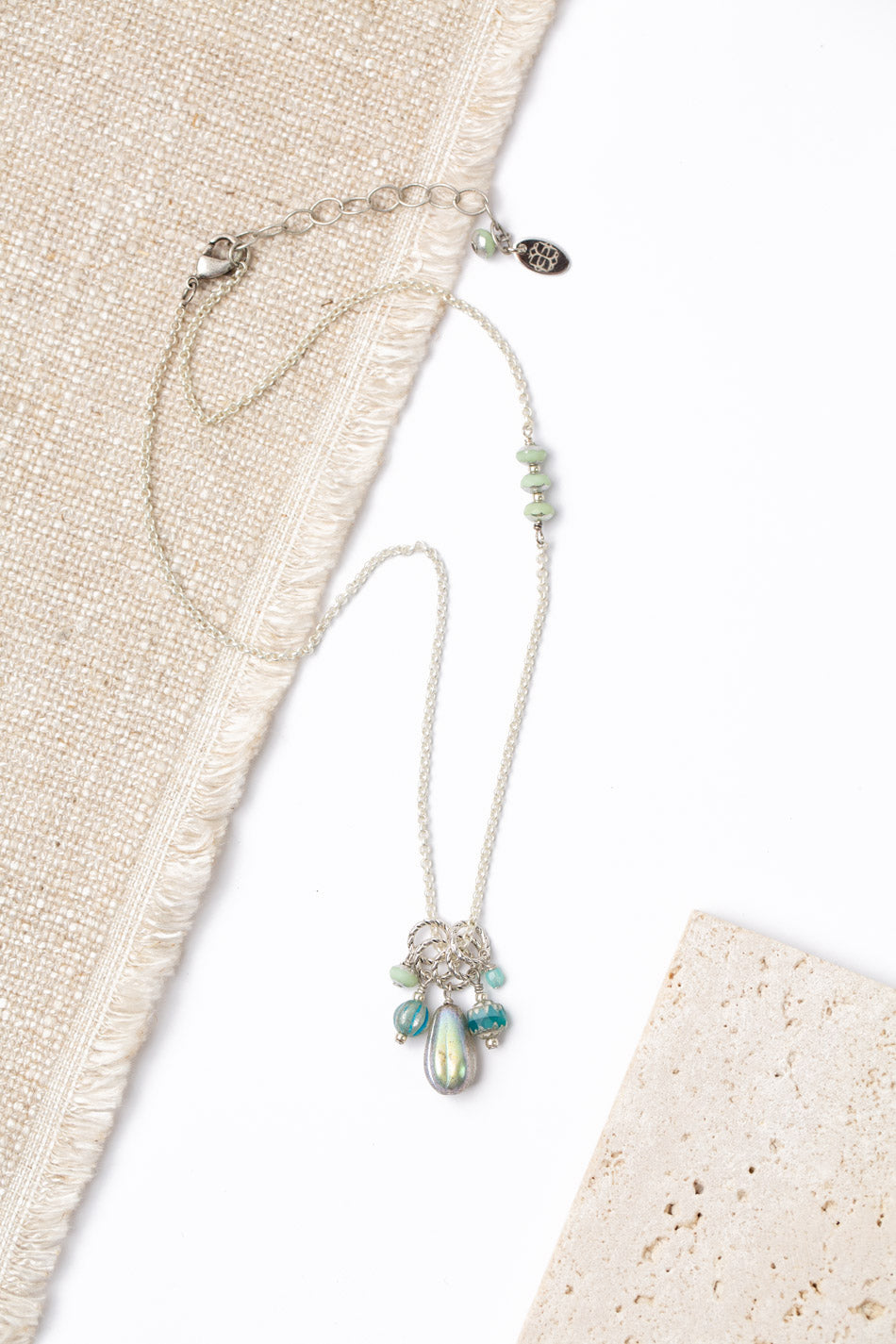 Czech Glass 16 18 Silver Color Shift Czech Glass Simple Necklace Very well made.