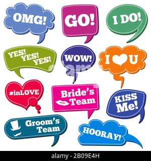 Wedding photobooth props. Bride and groom party speech bubble marriage quotes for wedding celebration funny wedding phrases vector symbols set Stock Vector Image Art Alamy Very well made.