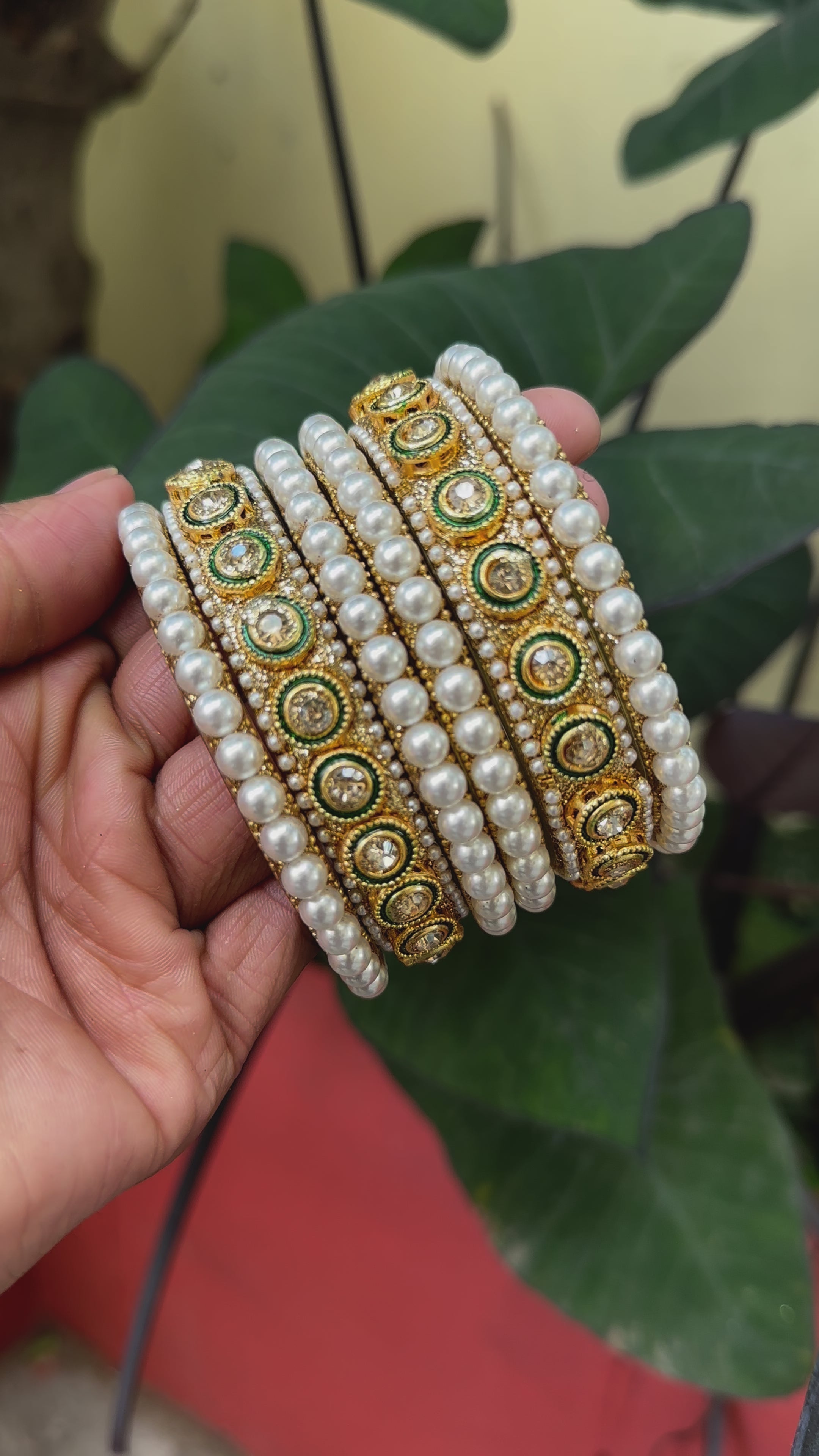 6PCS BANGLES SET IN PEARL MOTI WITH RUBY GREEN SET FOR WOMEN IN GOLD 50 STAR BANGLES WHOLESALE Very well made.