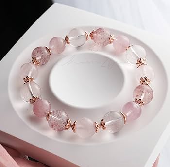 Precious Gemstone Pink Rose Gold Rose quartz Strawberry Quartz Azeztulite Rutilated Quartz Handmade Original Design Bracelet Very well made.