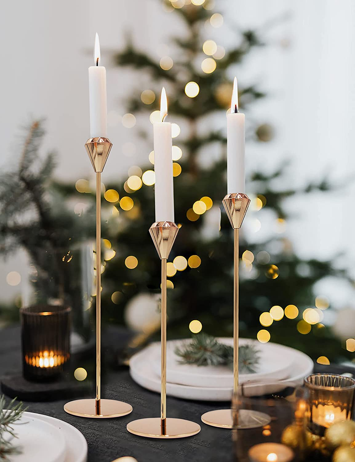 Diamond Shaped Candle Holders Set Gold Taper Candle Holder Metal Candle Stand Candlestick Holders 3 in 1 Set for Wedding BestSuppliers Very well made.