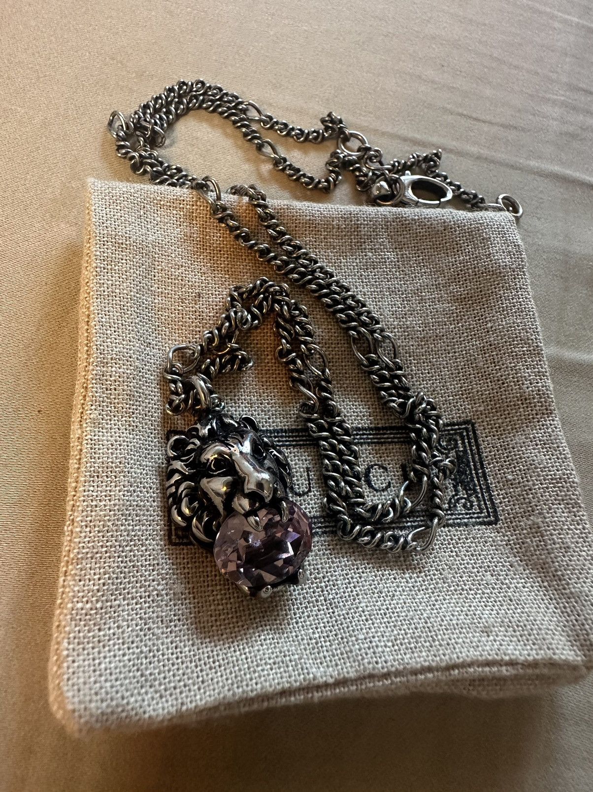 Authentic Gucci Lion head necklace with crystal Very well made.