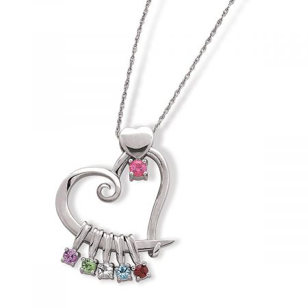 Silver Mother or Grandmother Heart Birthstone Charms Pendant Very well made.