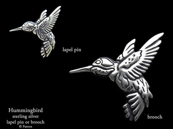 Hummingbird Lapel Pin Hummingbird Brooch in Sterling Silver by Paxton Jewelry Very well made.
