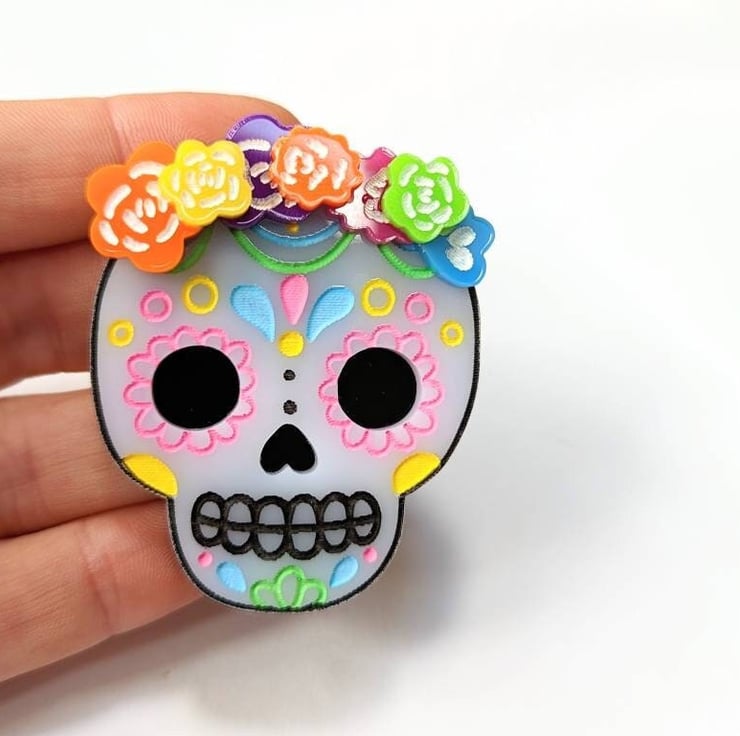Halloween Catrina skull brooch on acrylic Dia d. Folksy Very well made.