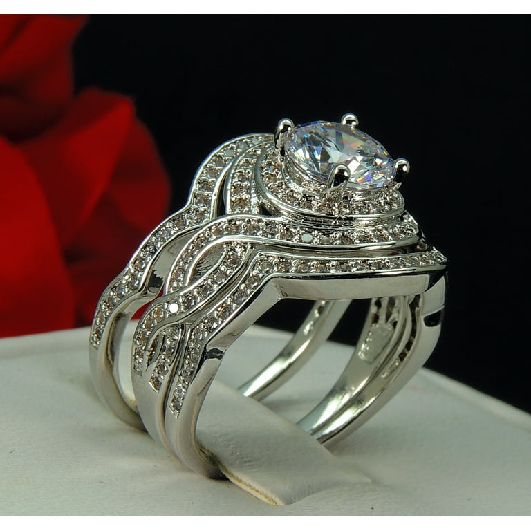 Barbara Halo Pave 3 Piece Engagement Wedding Band Bridal Ring Set Ginger Lyne Collection Women s Size 9 Grey Type Very well made.