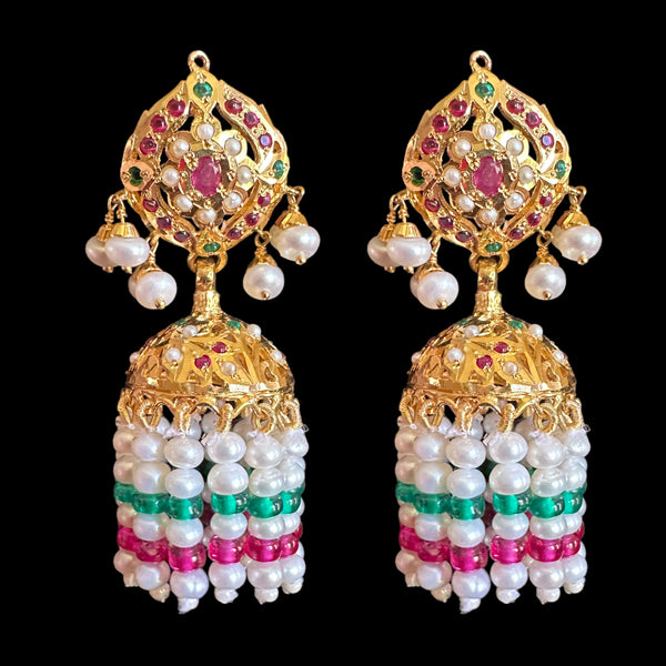 Gold Plated Emerald And Ruby Jhumkas Riana by Shikha Jindal Fabilicious Fashion Very well made.