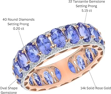 Amazon CUSHIONBLUE Tanzanite Eternity Band 14k Solid Gold Diamond 5.35ct Ring 5x3mm Oval Gemstone Band Engagement Rings Gift For Women. 5 Clothing Shoes Jewelry Very well made.