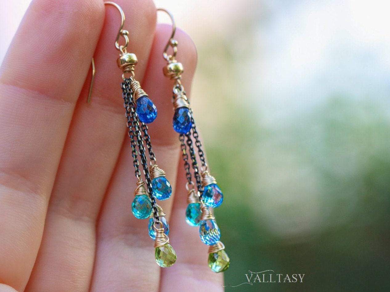 The Celeste Earrings Tassel Earrings with Multi Gemstone Precious Stones Mixed Metal Earrings Very well made.