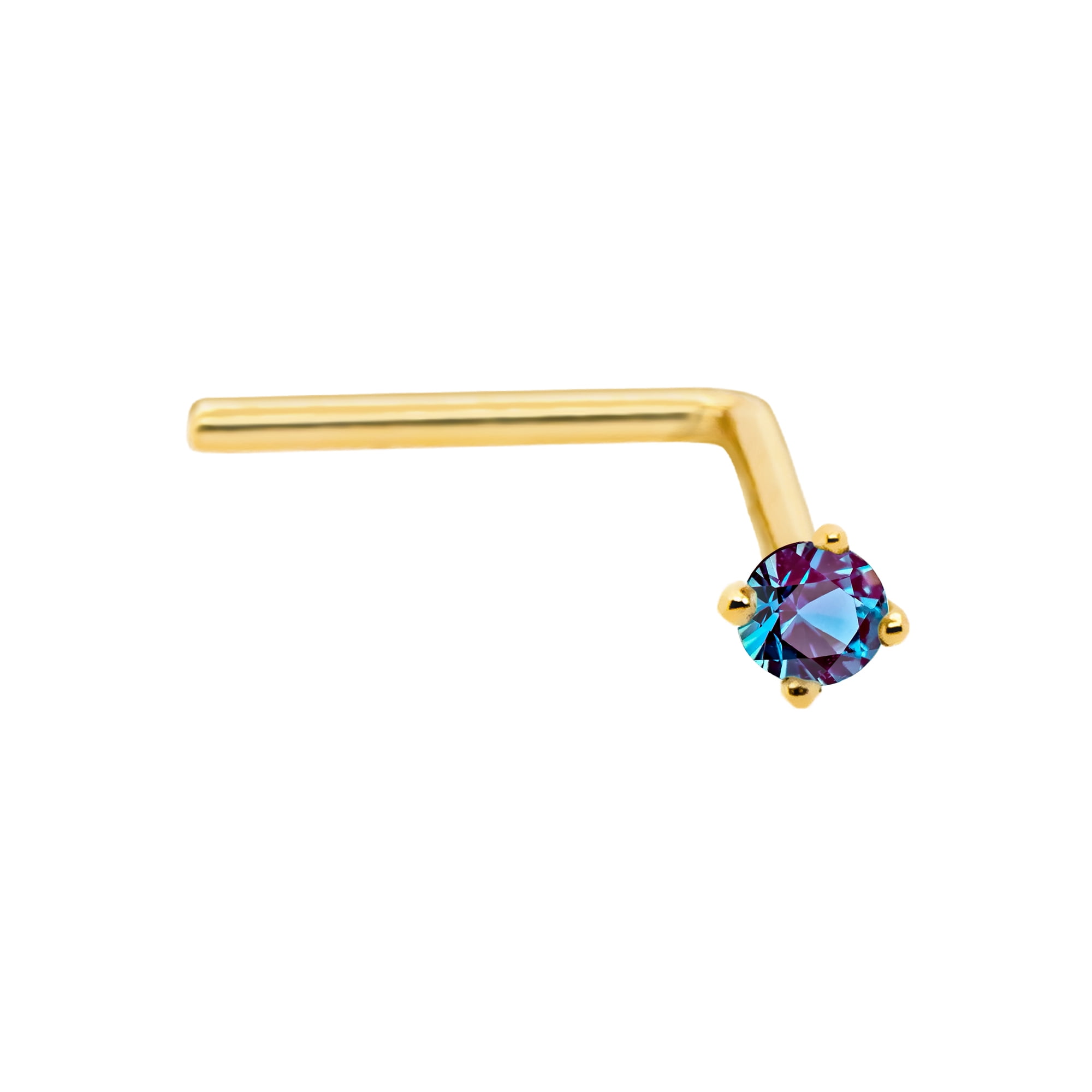 Solid 14K Yellow Gold L Shape Stud 1.5mm Lab Alexandrite 22G L bend Nose Ring Stud June Birthstone Nose Stud NS LALX15YG Very well made.
