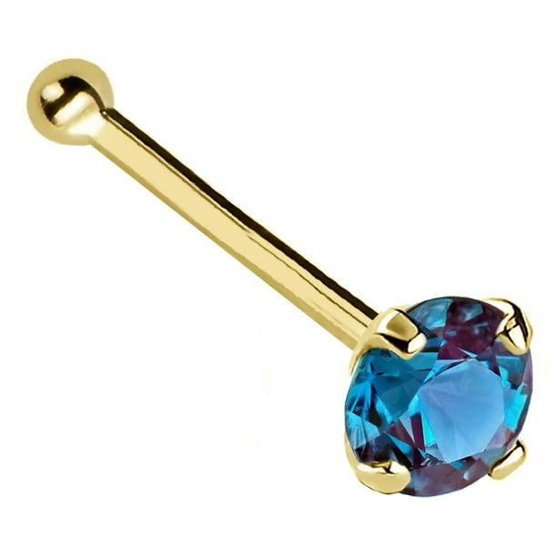 Solid 14K Yellow Gold Nose Bone Stud 3mm Lab Alexandrite 22G Ball end Nose Ring Stud June Birthstone Nose Stud NS LALX30YG Very well made.