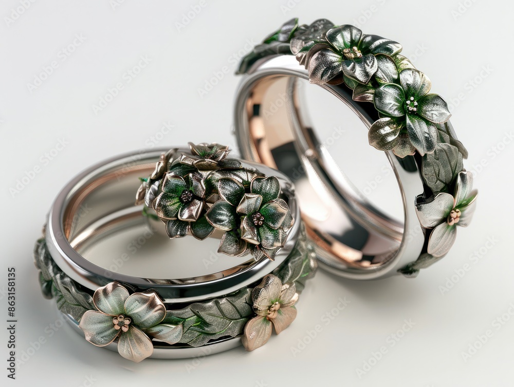 Rose gold and silver wedding rings featuring a beautiful bouquet of green flower Business Pics Foto Poster Wandbilder bei EuroPosters Very well made.
