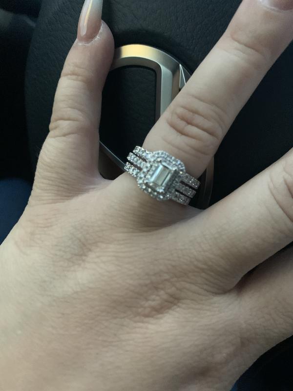 Vera Wang Love Collection 1 1 3 CT. T.W. Emerald Cut Diamond Double Frame Engagement Ring in 14K White Gold Zales Very well made.