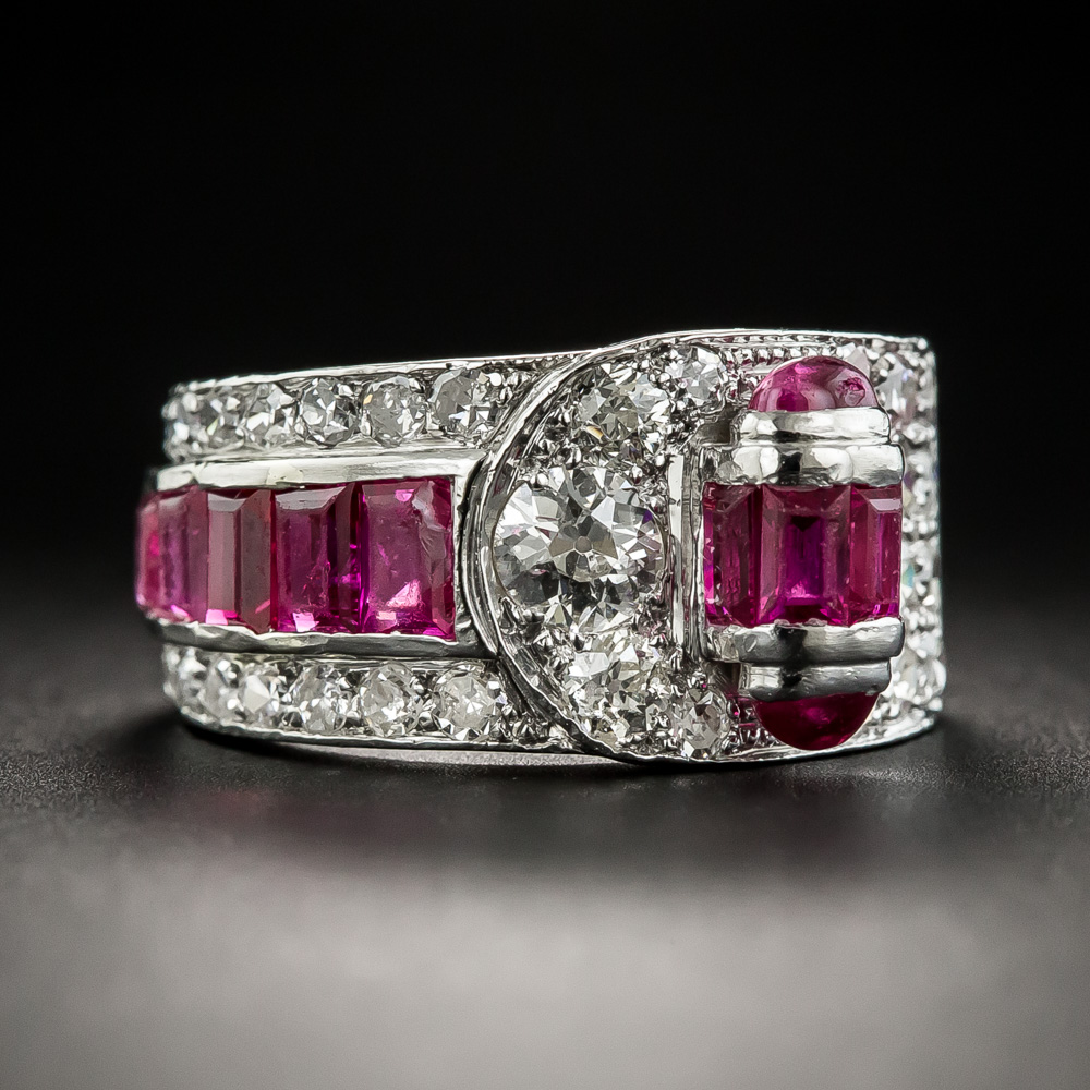 Diamond Ruby Platinum Engagement Ring Art Deco Natural Handmade French Cut Very well made.