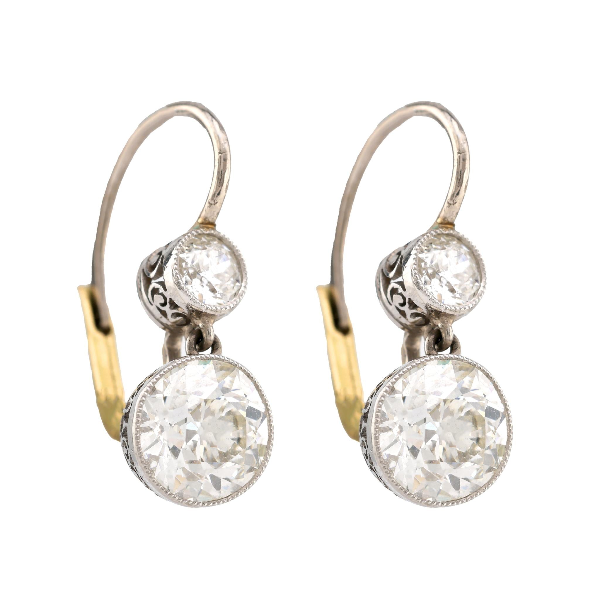 Edwardian Inspired Diamond Two Tone Drop Earrings Trumpet Horn Very well made.