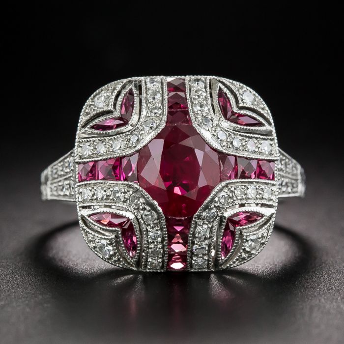 Art Deco Style Natural Ruby Diamond Ring Exquisite Jewelry for Every Occasion FWCJ Very well made.