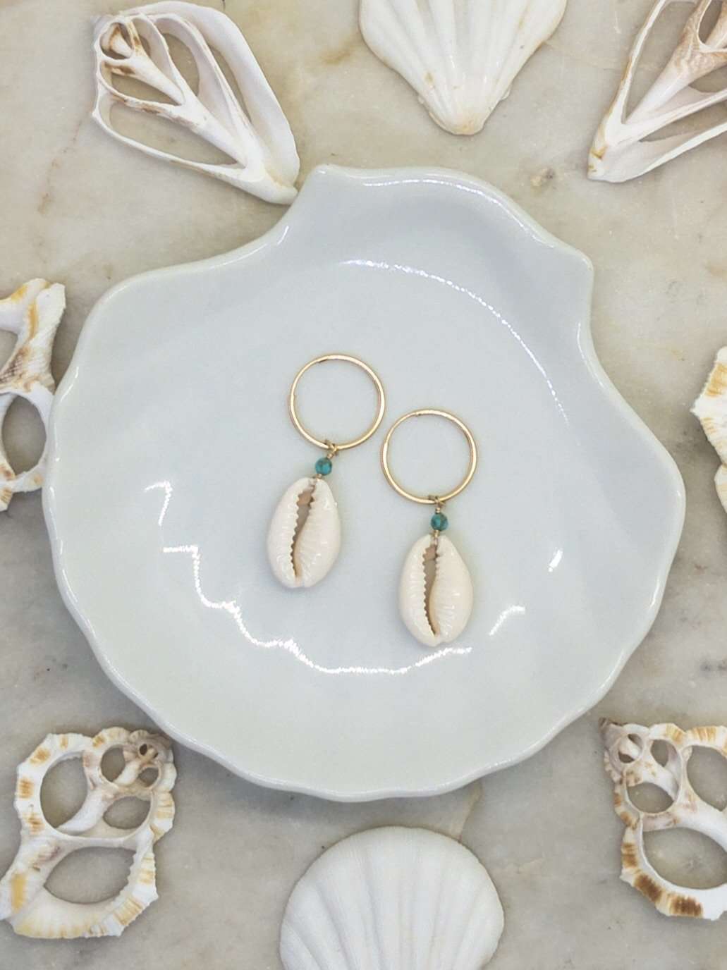 Cascading Cowrie Shell Hoop Earrings by Shop Kamawe Very well made.