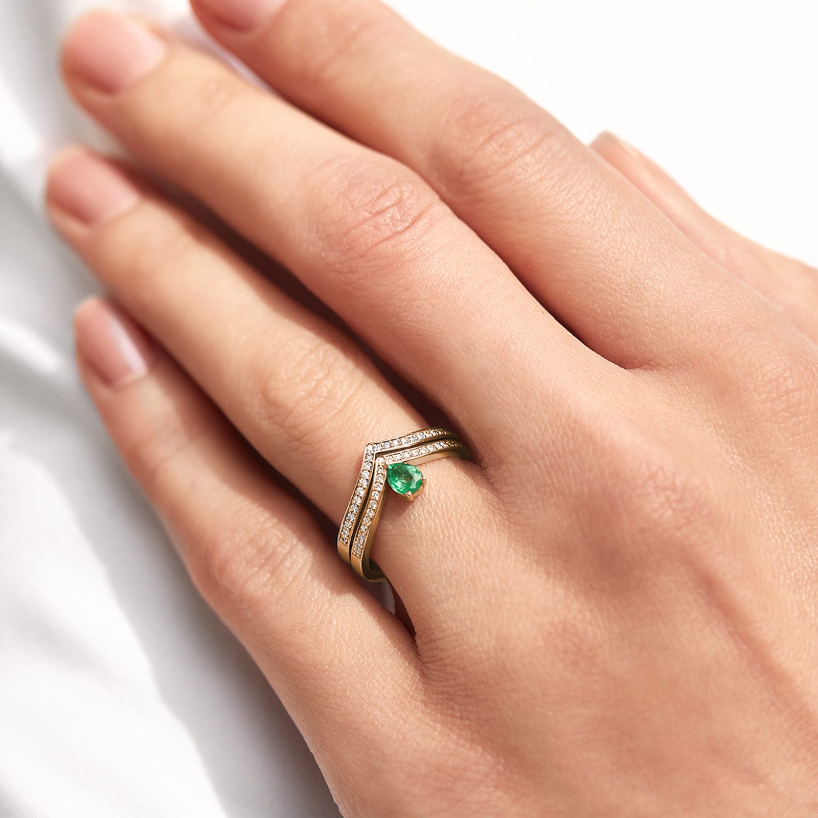 Emerald teardrop ring in 14k yellow gold KLENOTA Very well made.