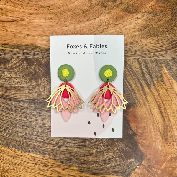 Lotus Flower Statement Earrings with Brass Charms Folksy Very well made.