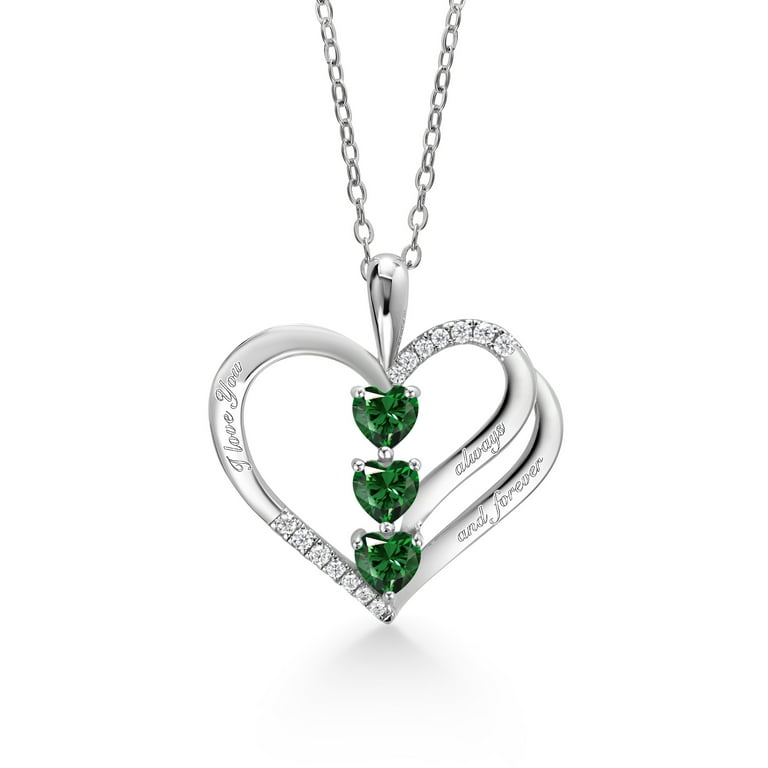 Gem Stone King 925 Sterling Silver Heart Shape Green Nano Emerald and White Moissanite I Love You Always and Forever Pendant Necklace for Women 1.30 Very well made.