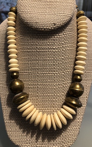 VINTAGE AFRICAN TRIBAL BOHO NECKLACE BONE AND BRASS BEADS 18 LONG. eBay Very well made.