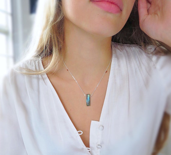 Dainty gemstone necklace labradorite pendant necklace gem bar necklace sterling silver vertical bar necklace gemstone jewelry 14k GF Etsy Very well made.