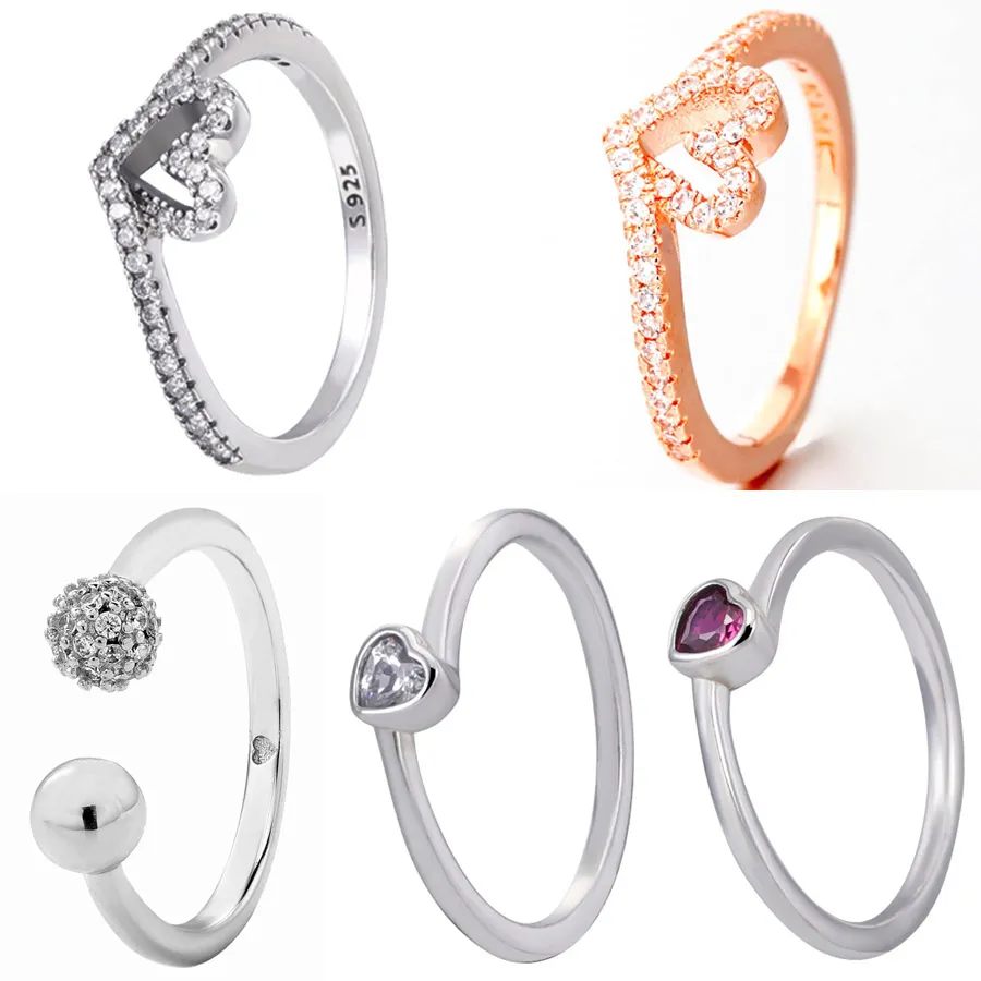 DHgate 925 Sterling Silver Womens Pandora Style Ring Heart Crown Fashion Rings Polished Pave Bead Open Wishbone Heart Tilted Heart Solitaire Ring Jewelry Very well made.