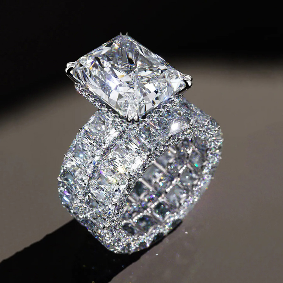 Princess Cut White Sapphire Sterling Silver 3 Piece Bridal Sets Joancee Jewelry Very well made.