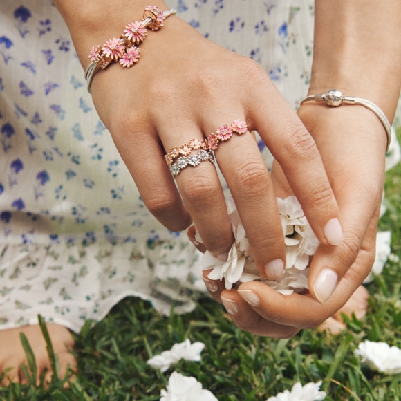 Pink Daisy Flower Trio Ring Pandora Jordan Very well made.