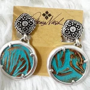 Patricia Nash Carina Filigree Earrings Tooled Turquoise Silver Clip On Earrings Very well made.