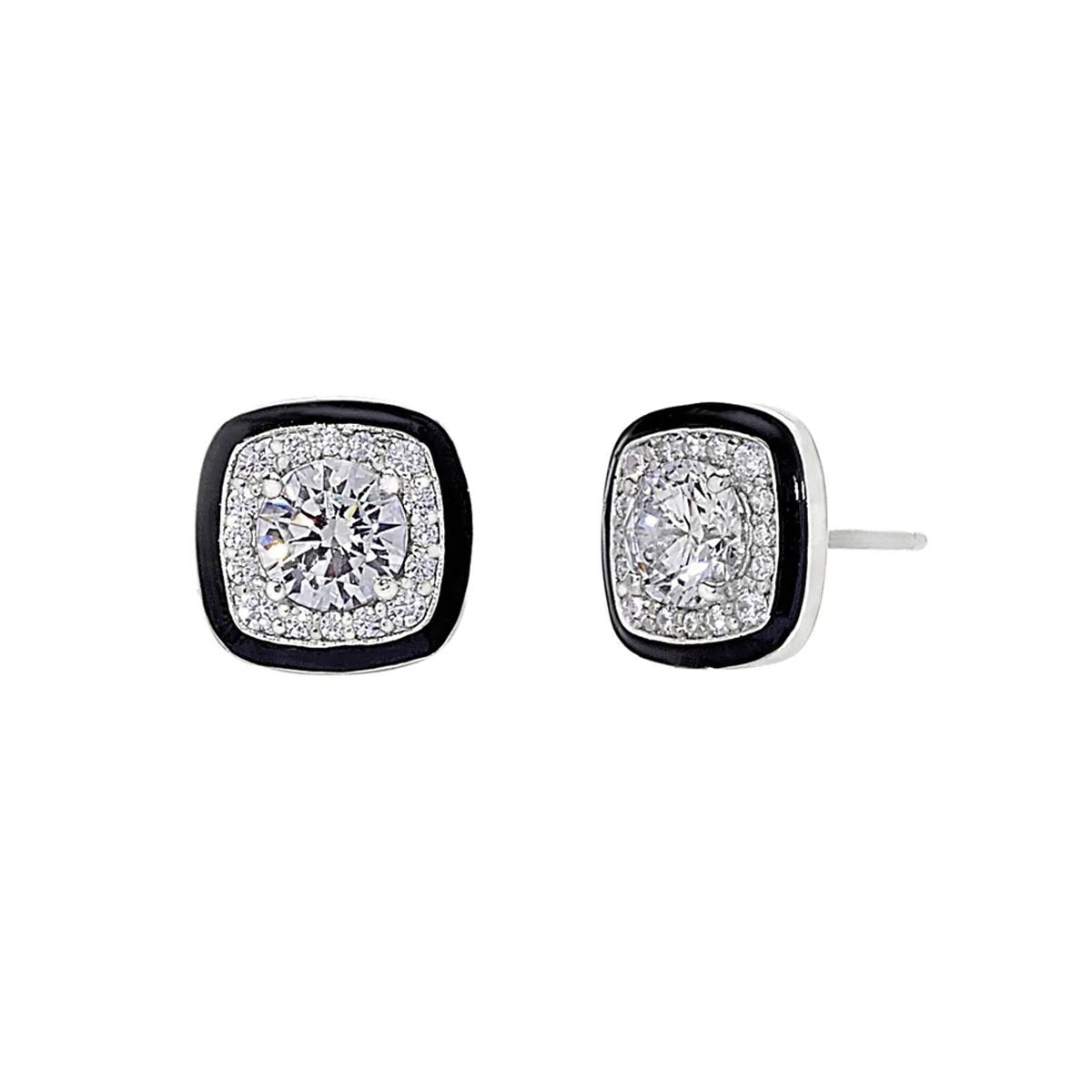 Cubic Zirconia and Black Enamel Stud Earrings in Sterling Silver Day s Jewelers Very well made.