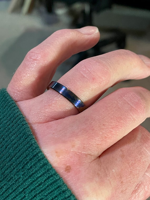 Heat Treated colored Titanium Ring 4mm Width US Size big Size 7.5 Flat Profile Etsy Very well made.