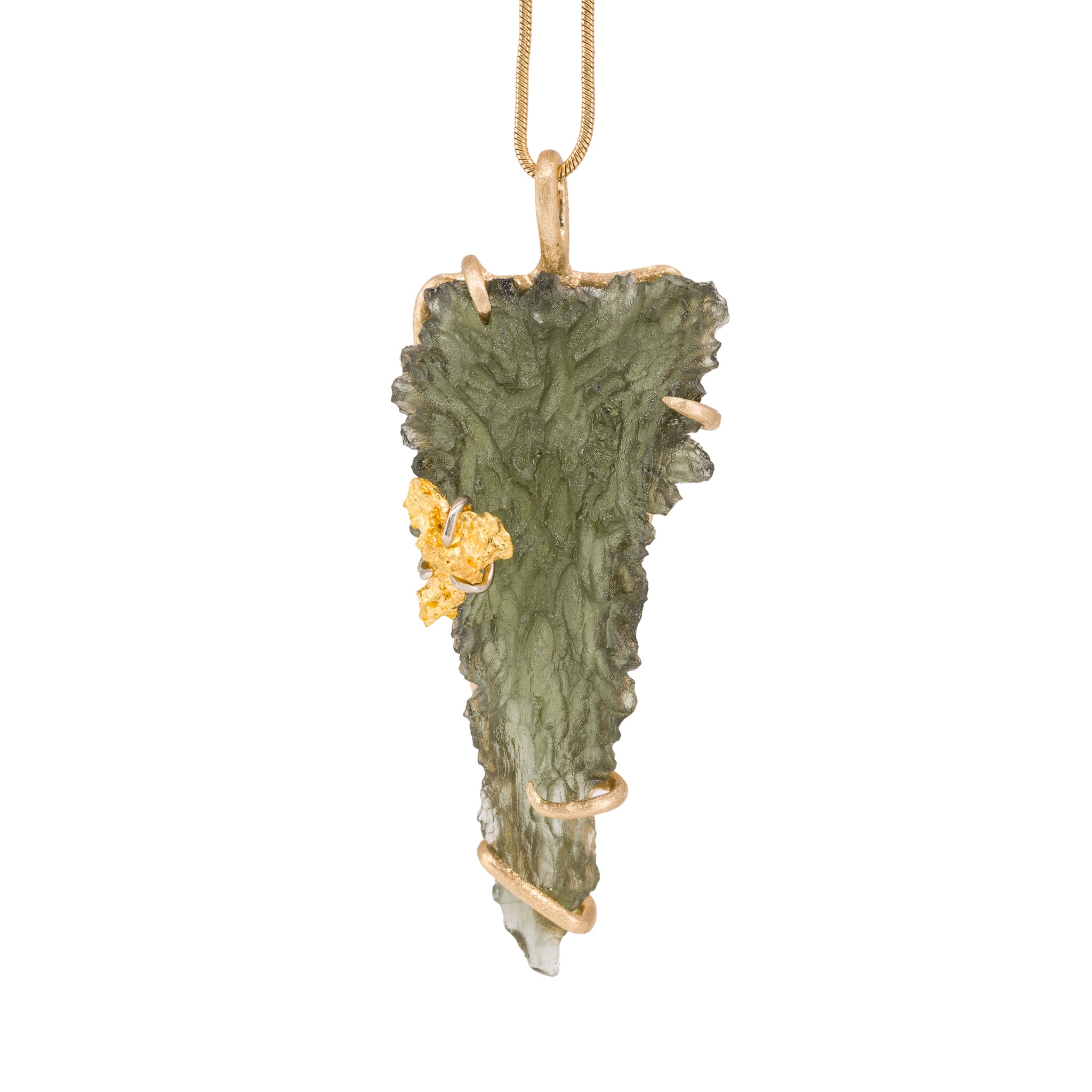 Moldavite 14K Gold Necklace Flawk Very well made.