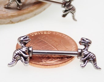 Nipple Barbell with dinosaur design Gold Plated Surgical Steel 316L Gold Plated Brass The World s No.1 Piercing Shop Very well made.