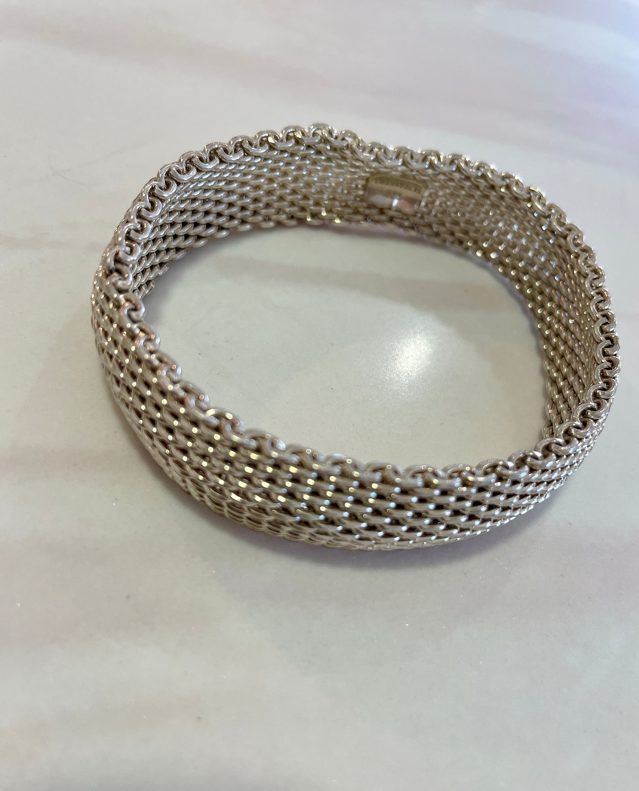 Tiffany Co. Sterling Silver Mesh Somerset Bracelet Bangle Authentic Tiffany Co 925 Silver Woven Dome Bracelet Basket Weave Braided Etsy Very well made.