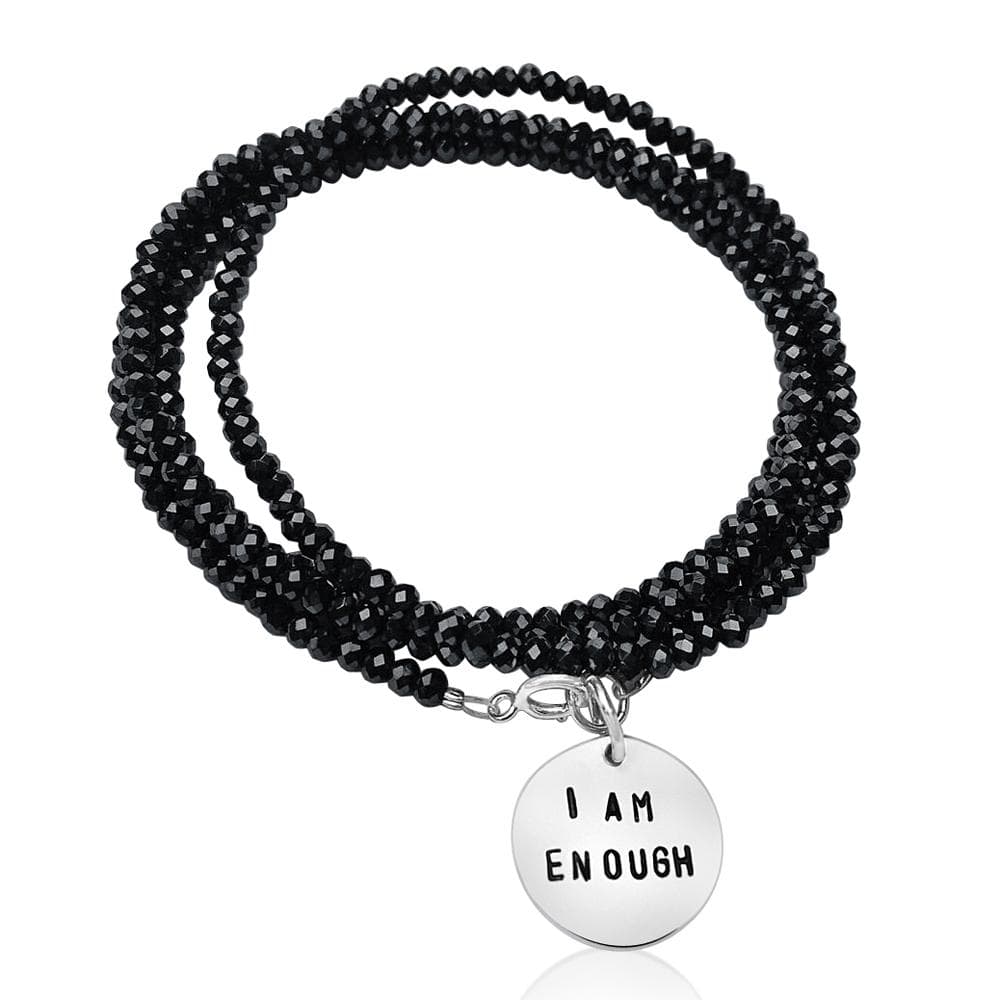 I Am Enough Affirmation Wrap Bracelet with Midnight Dark Crystal S 6 inch Wrist Size Very well made.