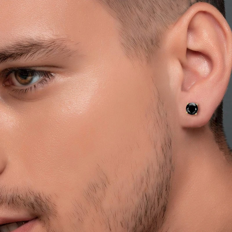 Black Triangle Solitaire Men s Ear Stud 1 Pc Only 925 Silver X Small White Very well made.