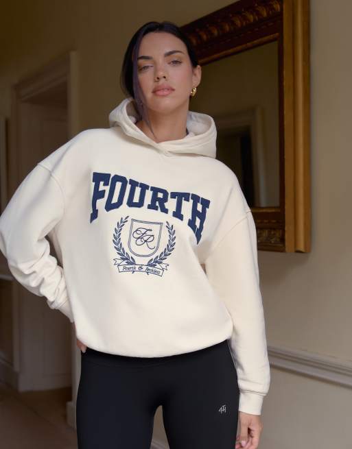 4th Reckless Womens Cream Harlow logo embroidered Cotton jersey Hoody L Very well made.