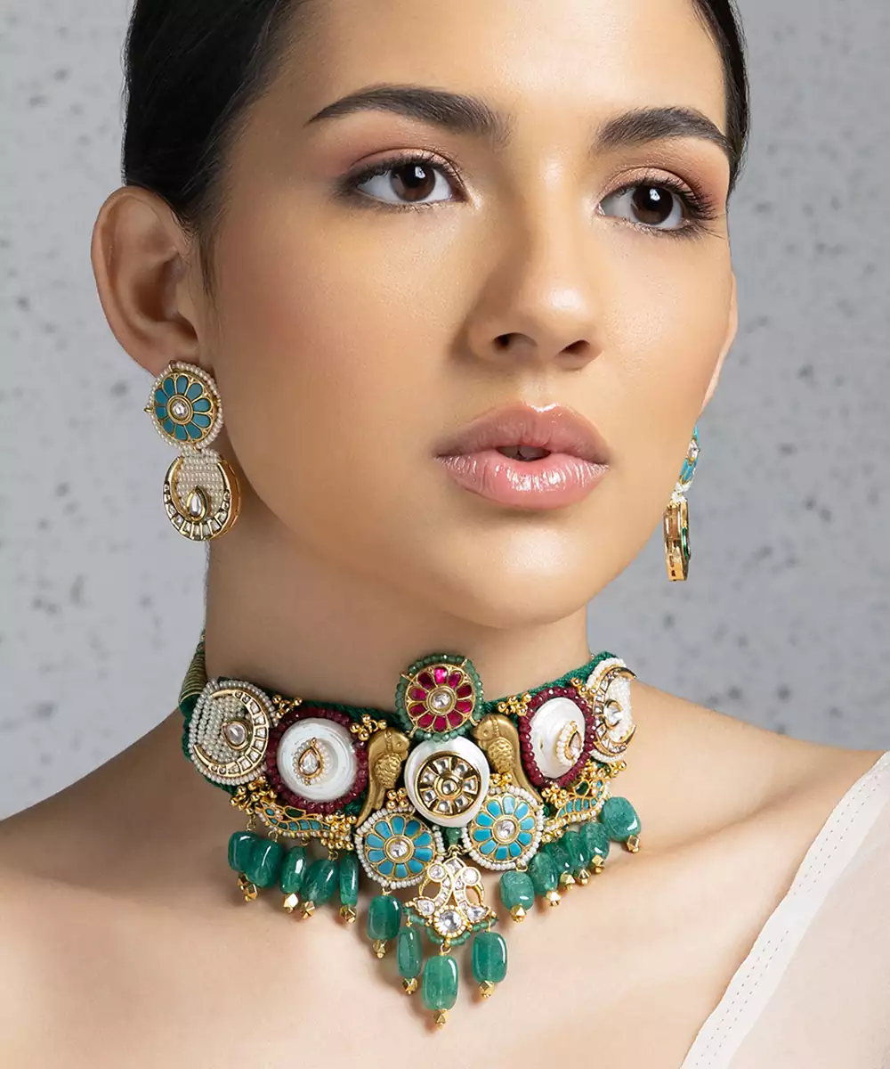 Buy Heritage multi stones choker set Online for Women by JOULES BY RADHIKA 4198363 Very well made.