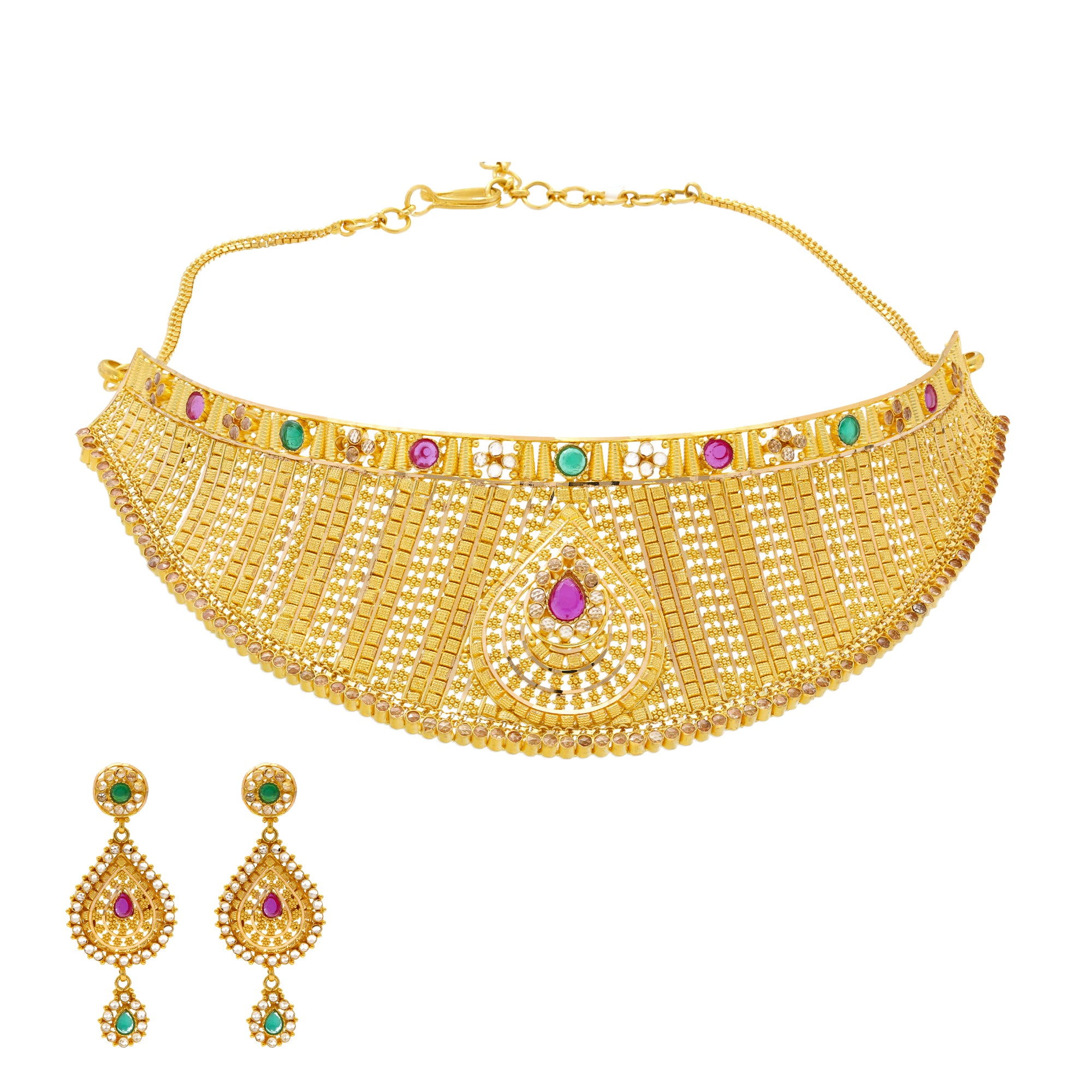 Buy Gold Forming Choker Necklace Light Weight Real Gold Choker Necklace Set for Marriage Very well made.