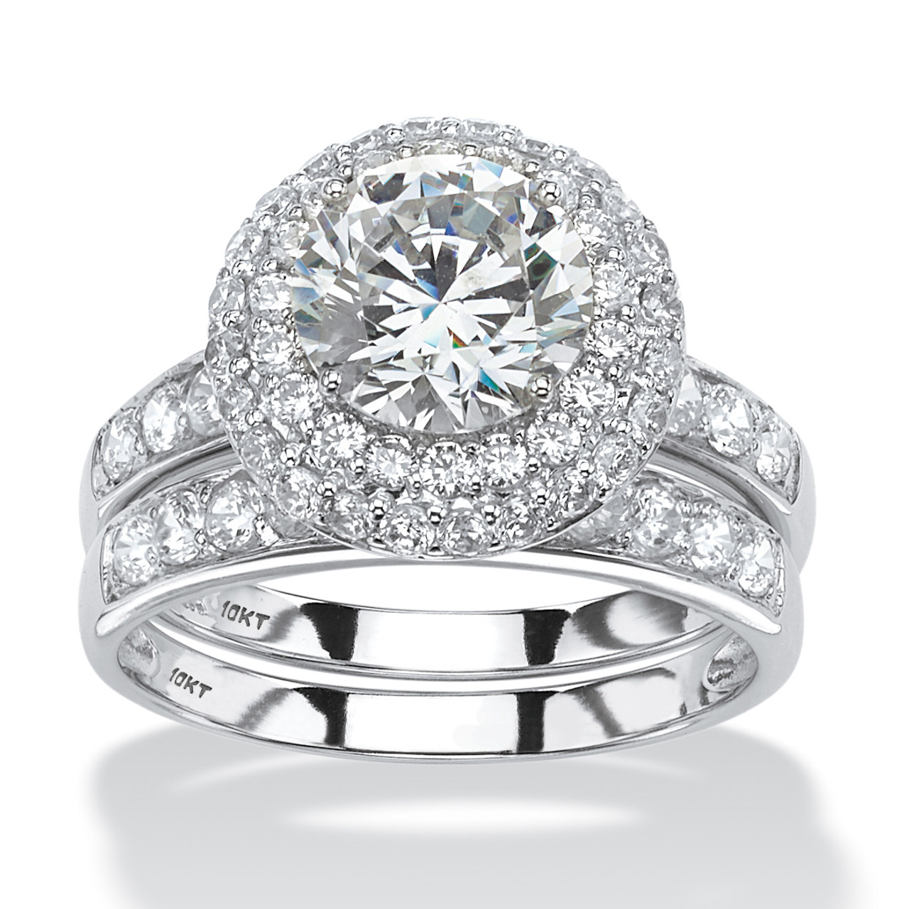 Round Cubic Zirconia 2 Piece Halo Bridal Ring Set 3.16 TCW in Solid 10k White Gold Very well made.