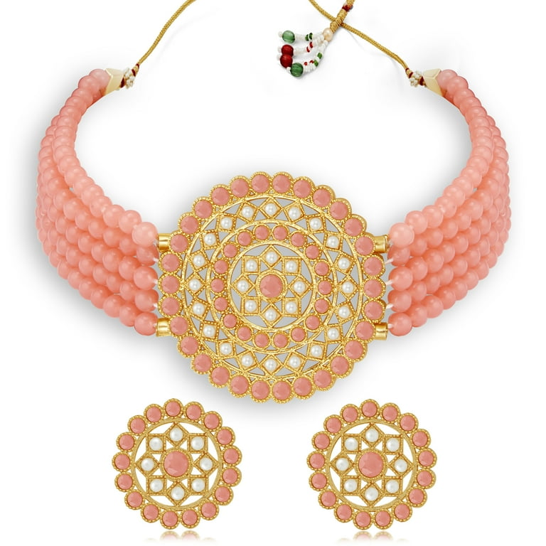 Sukkhi Pretty Gold Plated Baby Pink White Pearl Choker Necklace Set for Women Walmart Very well made.