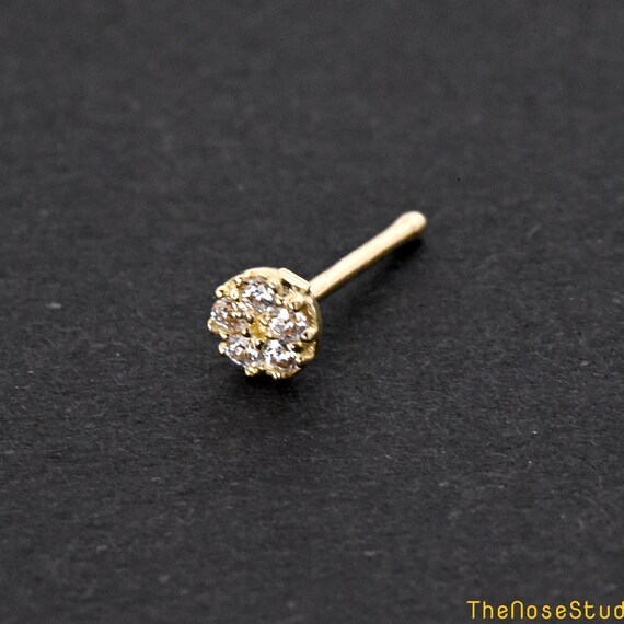 3.5mm Five Clear Cubic Zirconia Prong Set Disc 14K Solid Gold Nose Bone Ball End Stud Nose Stud Gold 23 Gauge Gold Nose Piercing Ring Stud Very well made.