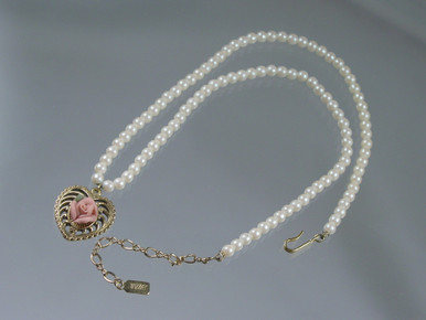 1928 Porcelain Heart Pearl Necklace Very well made.