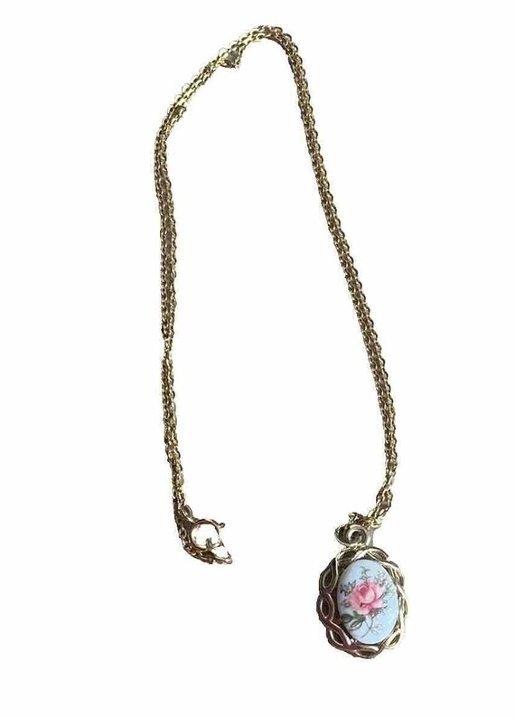 Beautiful 1928 Brand Pink Porcelain Rose Pendant Necklace Gold Tone Chain eBay Very well made.