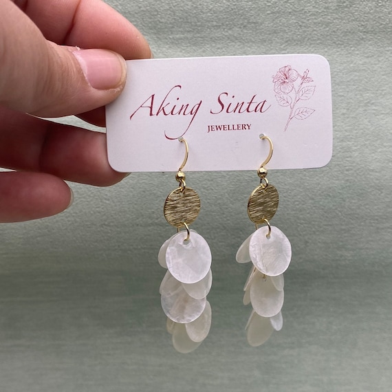 Capiz Shell Cascading Ohrringe mit 18K vergoldeten Edelstahlhaken und Vollkreisstecker Braut Hochzeit Boho Leichtgewicht Etsy Very well made.