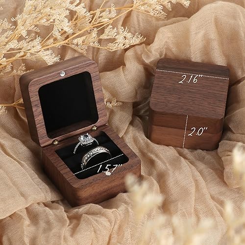 Wooden Ring Box Engagement Ring Box with 2 Slots Double Ring Box Square Wedding Ring Box Small Ring Holder Box for Wedding Proposal Ceremony Black Inner without window in Oman Whizz Jewelry Very well made.