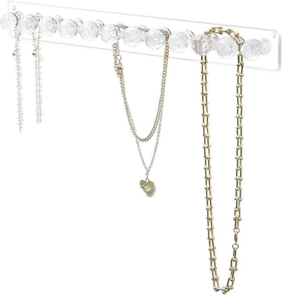 Clear Acrylic Necklace Hanger Wall Mounted Jewelry Organizer Hanging with 12 Diamond Hooks for Necklaces Rings Bracelets and Ears Amazon Home Very well made.